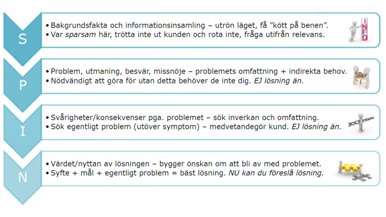 SPIN står (på svenska) för situation, problem, inverkan, nytta.